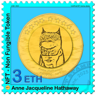 I dedicated this UNOFFICIAL meme NFT to Cat Woman Aanne Hathaway an American actress, satirical digital image created like meme Postage Stamp coin. Pixel dimension width: 1500 pix